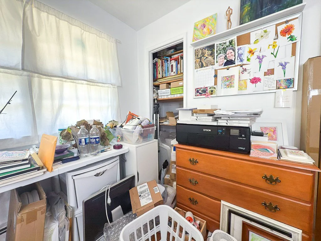 My art studio is a reflection of my creative mind. Right now, it’s cluttered, messy, and disorganized. There are dying plants, dust bunnies, and piles of unfinished work waiting patiently for my return. Stray objects that don’t belong have found their way in and now linger, demanding energy and motivation I don’t currently have. The space feels like a physical manifestation of my creative block, one that makes it harder to do the very thing it’s meant for. I can feel the clutter as a physical pressure, a weight that makes it hard to breathe, let alone create.